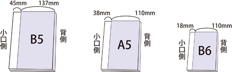 サイズ:B5本の場合 → 表紙1側の小口から45mmでカット(表紙1側の表紙の長さ137mm)