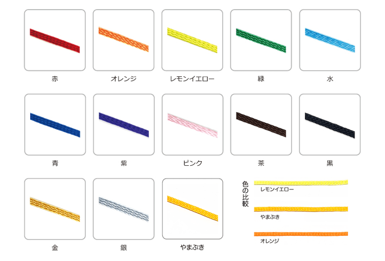 - 赤・ピンク・ライトブルー・緑・薄黄・黒・ゴールド